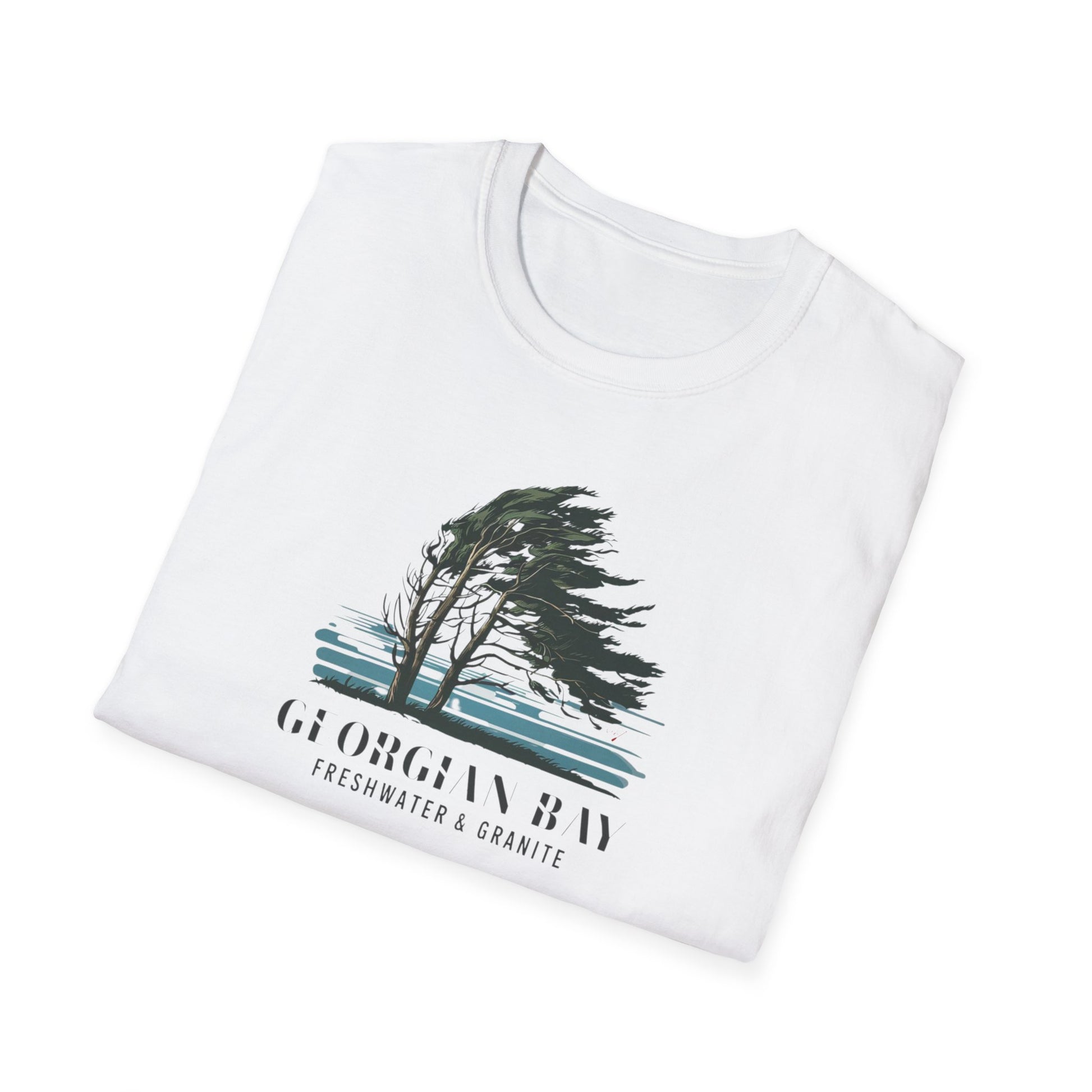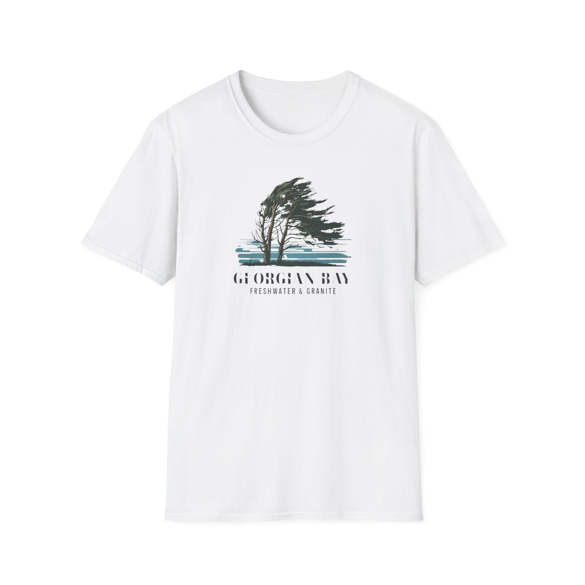 Capture the spirit of Georgian Bay with the Breeze T-shirt, showcasing the iconic windswept pines and rugged granite shoreline. Ideal for nature enthusiasts and adventure seekers.